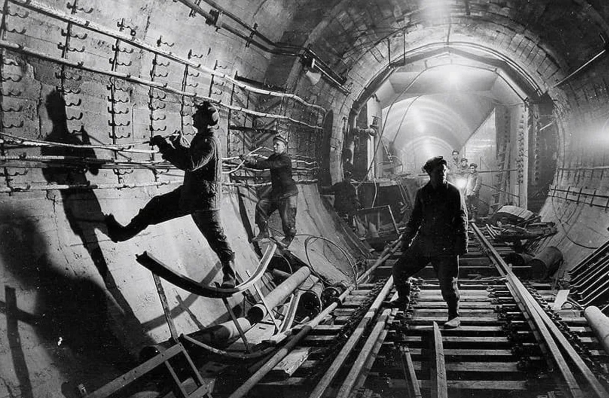 Несмотря на перипетии, стройка набирала обороты. В 1933–34 годах по всей трассе будущей первой линии земля вскрылась десятками шахт и котлованов. Суровая московская зима не остановила рабочих: мерзлый грунт начали искусственно размораживать горячей водой и паром, а плывуны – наоборот, замораживать рассолом хлористого кальция. В забои спускались молодые парни и девушки – комсомольцы-добровольцы, студенты горных вузов, вчерашние крестьяне. Их улыбки, запечатлённые на редких фотографиях, скрывали тяготы адского труда. Тоннели рыли почти без механизации, лопатой и отбойным молотком, вывозили грунт тачками и вагонетками. Часто случались обвалы, людей заваливало землёй, и газеты тех лет пестрели некрологами. Но энтузиазм был искренним: бригады соревновались за звание ударных, лучших проходчиков награждали значками ГТО и грамотами. К концу 1934 года, когда основные тоннели были проложены, тысячи метростроевцев с гордостью называли себя покорителями подземной стихии.