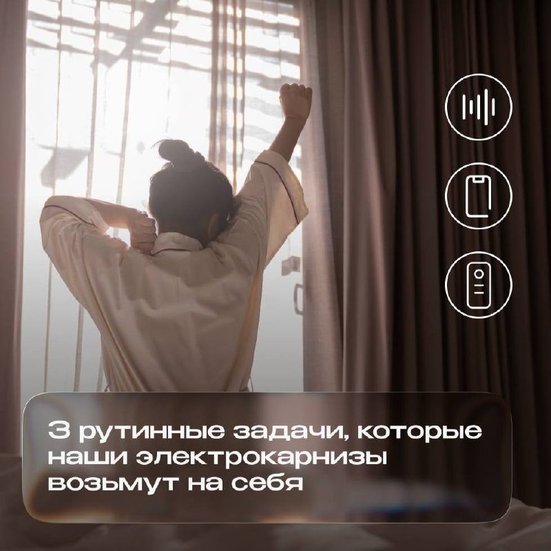 3 рутинные задачи, которые наши электрокарнизы возьмут на себя: 1. Вставать, чтобы открыть/закрыть шторы – теперь это делается с пульта, телефона или голосом. 2. Регулировать свет вручную – можно выставить таймер и просыпаться с естественным светом. 3. Подравнивать шторы – электрокарниз всегда двигает их на заданную длину, складки остаются безупречными. Хотите такую же магию дома? 👇🏻 Оставляйте заявку на сайте или звоните 8-800-100-18-66