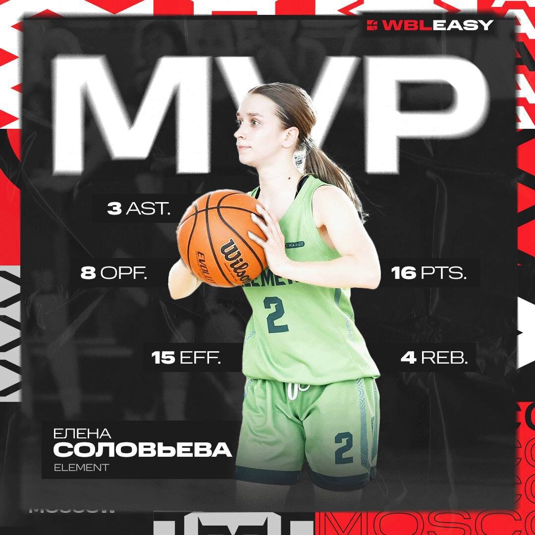 MVP WBL Соловьева Елена (Element) vs Dope Girls WBL Easy 3 тур 55:48 16 очков, 4 подбора, 3 передачи, 8 фолов соперника, 15 эффективность "Элемент" проигрывал 8 очков по ходу первой половины матча с Dope Girls. Но команде помогли вернуться в игру выступление больших и Соловьевой. Большие выиграли щит и дали надежность в защите, а Соловьева дала команде высочайший класс игры в нападении и защиту против маленьких игроков соперника. Елена носилась по всей площадке, как ракета, неустанно трудясь на обеих сторонах площадки. Соловьева отметилась солидным процентом реализации, забив с игры 5 из 12 бросков, и добавив к этому 4 подбора и 3 передачи. 📱Наш сайт 📱Группа Вконтакте 1️⃣@ABL Moscow