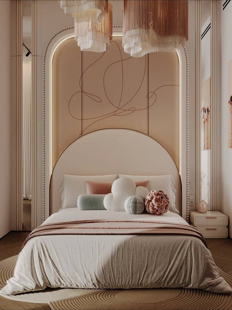 Крутая детская в необычных оттенках для девочки ❤️ Посмотрите на эти уютные детали, мягкий свет и обтекаемые формы ✨ Для особого удобства у девочки будут свои ванная комната и гардеробная. Пространство, где девочка будет себя чувствовать как взрослая! 🥇 Перейти в меню Mamka #детскаядлядевочки #детскаядляребенка #детскаядляодного