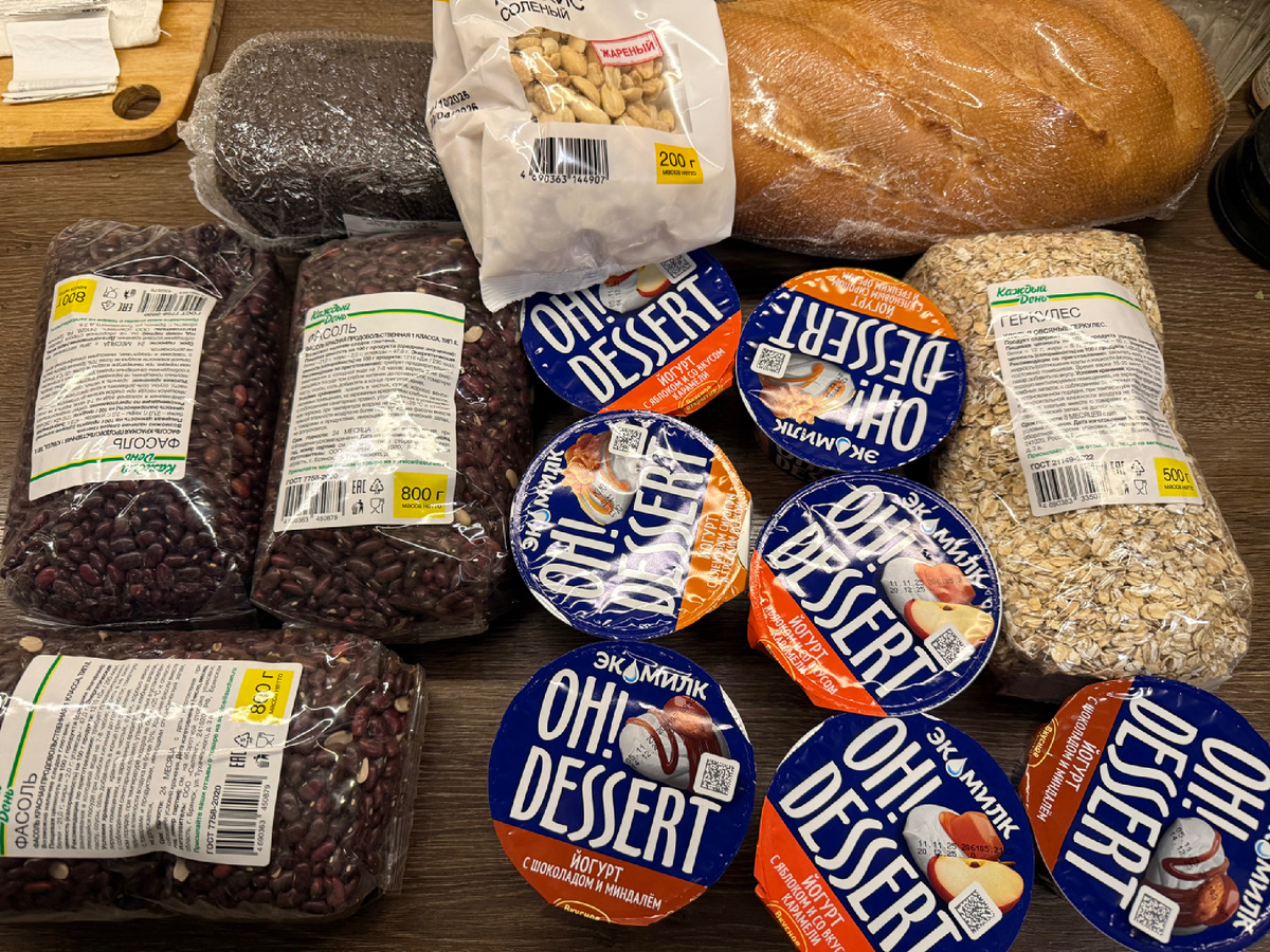 После того, как красный банк щедрой рукой выдал мне кэшбэк 5 % на продукты, я отправилась за покупками: В моих планах максимально пополнить свои продуктовые запасы с расчетом, чтобы хватило как минимум на 3 месяца: ноябрь, декабрь, январь. Начала я с Ашана, причем решила поставить эксперимент: взять презираемую в на Патриках собственную продукцию магазина: "Каждый день" и "Красная птица". Более того, я хочу сравнить в виде независимого эксперимента качество молока. "Авида" я люблю, это моя любимая молочная марка. "Каждый день" имеет хорошие отзывы на сайте, поэтому я решила взять и сравнить, причем не самой, а сделать для студентов слепую дегустацию. Пусть они выскажут свое непредвзятое мнение)). И так, я купила: Хлеб и батон из собственной пекарни, йогурты - новинка по приятной цене, овсянку - 2 упаковки и три упаковки красной фасоли. Она, кстати, оказалась дешевле, чем в Метро СС. Горошек Бондюель, фасоль консервированная "Каждый день", упаковку пшена и 2 упаковки манки, причем одну