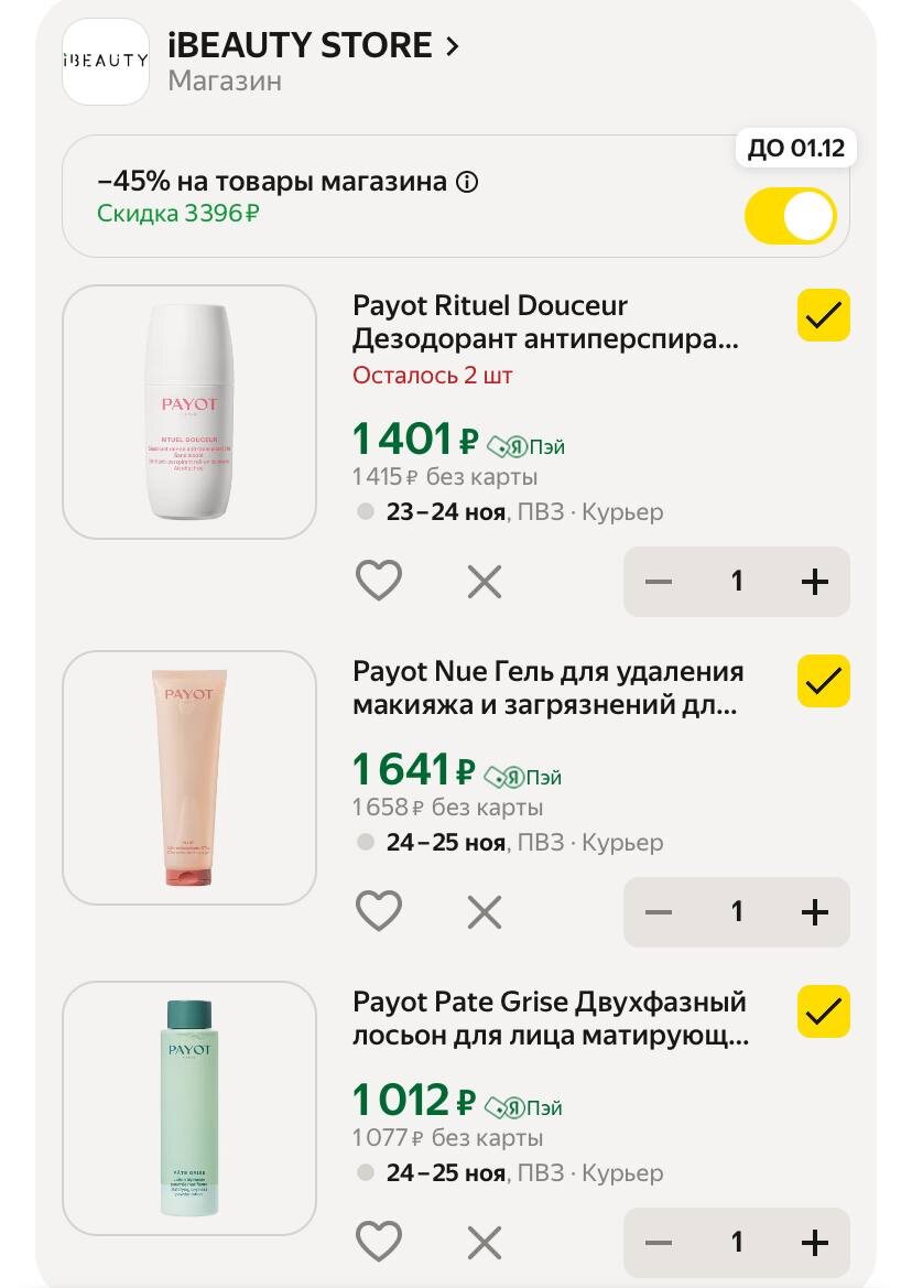 Payot Rituel Douceur Дезодорант антиперспирант 1401 ₽ | 2548 ₽ Payot Nue Гель для удаления макияжа и загрязнений 1641 ₽ | 2984 ₽ Payot Pate Grise Двухфазный лосьон для лица матирующий для проблемной кожи 1012 ₽ | 2075 ₽ Подписчикам скидка 45% по прмокоду 0F0WMTV9 ✅ Подписаться 🔣 Бот с промокодами
