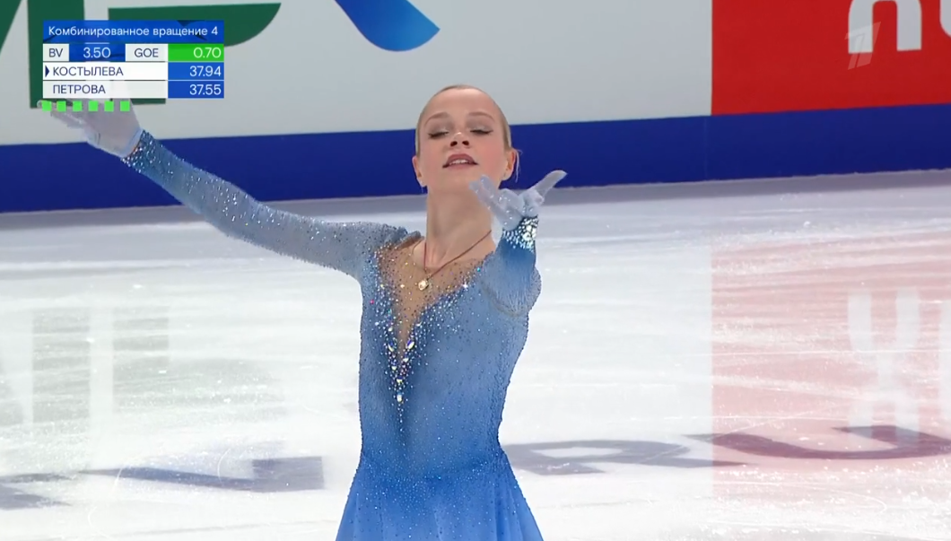 Блестящей победой Лены КОСТЫЛЕВОЙ в короткой программе ознаменовался сегодняшний вечер на Гран-при в Омске. Действующая чемпионка России исполнила (единственная из лидеров) тройной аксель, который, по большому счету, мало чего дает по оценкам. Но! Не забываем, что перед нами два прирожденных победителя – сама Лена и ее тренер Евгений Плющенко. Даже страшно рискуя с трикселем на прошлом этапе, когда едва не лишилась каскада, Костылева опять пошла на триксель сегодня. А ведь команда Плющенко очень тяжело добиралась самолетом до Омска, рейс был задержан сначала в Москве до 4 утра, а затем из-за тумана Омск не принял и летели в Тюмень, а там добрались до гостиницы в Омске только к вечеру. Сутки в пути. Однако разберемся, отчего чемпион Плющенко пошел с чемпионкой Костылевой на триксель. Ведь этот прыжок очень опасен именно у юниорок и именно в короткой программе, когда по правилам нельзя перепрыгнуть каскад, если что… Думаю, главное: предвзятое отношение некоторых судей к Плющенко и его по