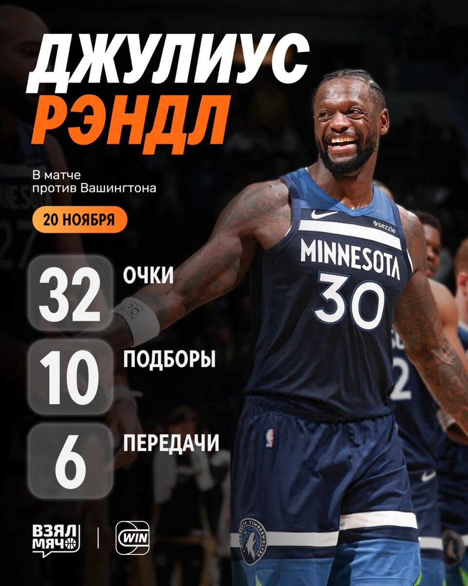 ⚡️ Джулиус Рэндл сделал разницу Форвард «Миннесоты» провёл хорошую игру против «Вашингтона» — 32 очка, 11 из 19 с игры, 10 подборов и 6 передач за 32 минуты. Рэндл был самым полезным игроком команды, и остался всего в нескольких шагах от трипл-дабла. 🏀 ПОДПИШИСЬ — ЗДЕСЬ ЖИВЁТ БАСКЕТБОЛ!