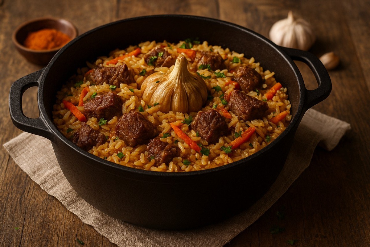 Вечер просит чего-то основательного, уютного и такого, чтобы дом пах так, будто в нём живёт счастье. Значит, сегодня плов с говядиной — честный, сытный, ароматный. Берём говядину и нарезаем крупными кусочками — пусть мясо чувствуется. Обжариваем его на раскалённом масле до румяной корочки. Добавляем лук полукольцами, ждём, пока станет мягким и сладким. Затем морковку — крупной соломкой, не мельчим, плов это любит. Когда всё обжарится и подружится между собой, засыпаем промытый рис. Не перемешиваем — плов любит порядок. Сверху кладём чеснок целиком и щедрую чайную ложку зиры. Заливаем горячей водой так, чтобы покрыла рис примерно на полсантиметра. Солим, накрываем крышкой и даём тихо томиться. Минут через 20 рис станет рассыпчатым, мясо — мягким, а кухня наполнится таким ароматом, что будет сложно дождаться ужина. Плов получается добротный, домашний, с характером. Вечерний — именно такой, какой должен быть: успокаивающий и вкусный.🍽️
