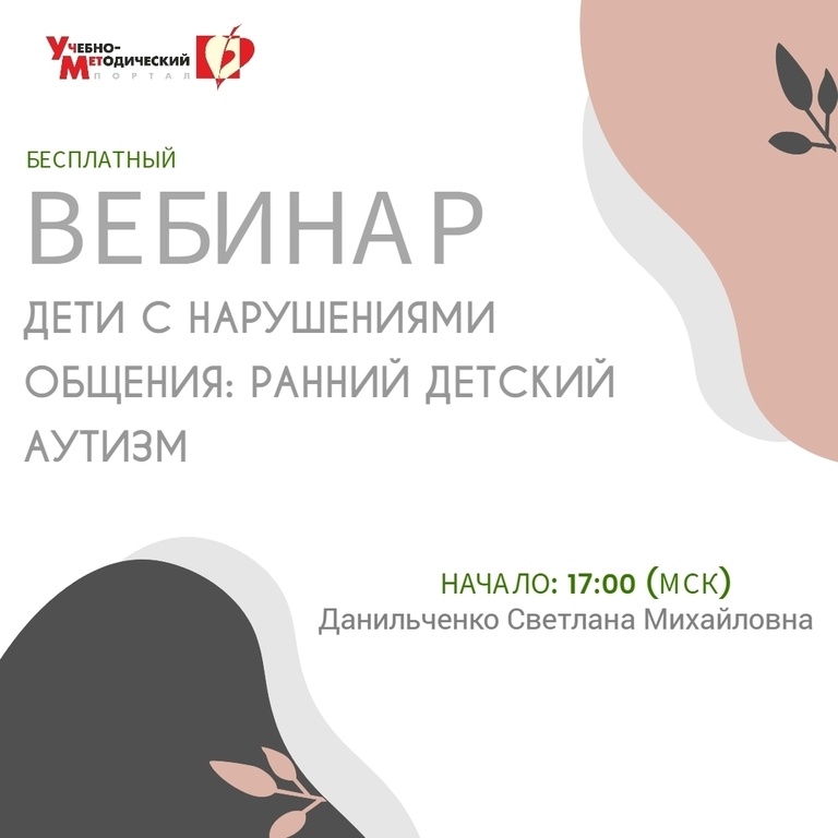 Вебинар «Дети с нарушениями общения: ранний детский аутизм» Дата проведения: 21.11.2025 Начало: 17:00 (МСК) https://www.uchmet.ru/events/item/3993058/ Аутизм - расстройство, возникающее вследствие нарушения развития головного мозга и характеризующееся выраженным и всесторонним дефицитом социального взаимодействия и общения, а также ограниченными интересами и повторяющимися действиями. Симптомы аутизма можно обнаружить уже в первые месяцы жизни ребенка. «Триада» нарушений» при аутизме: нарушение социальной адаптации, нарушения в коммуникативной сфере, стереотипность поведения. Вебинар раскроет причины, вызывающие ранний детский аутизм и познакомит слушателей с классификацией нарушений по типу расстройств аутистического спектра, перечислит симптоматику. Ведущий вебинара осветит значимые позиции в характеристике познавательной, двигательной и когнитивной сферах, укажет на общие для всех детей с ранним детским аутизмом эмоциональные особенности, а также коснется мероприятий при кризисн