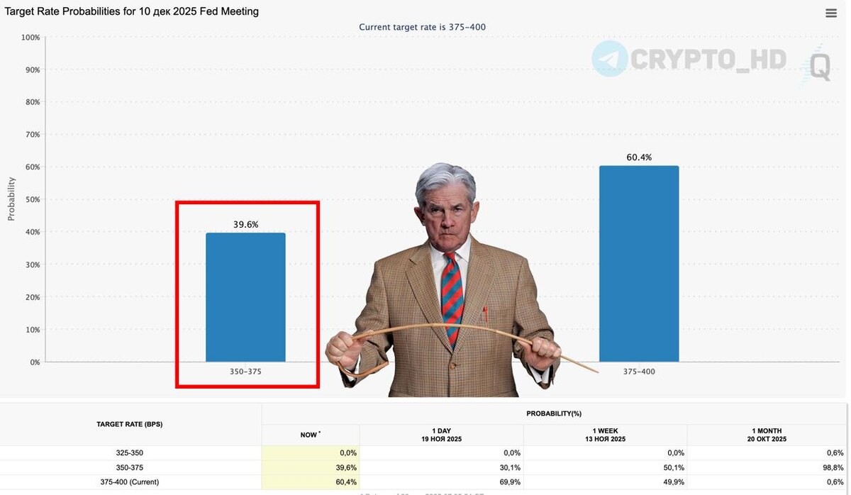 π₯ FedWatch: Π‘Π½ΠΈΠΆΠ΅Π½ΠΈΠ΅ ΡΡΠ°Π²ΠΊΠΈ Π€Π Π‘ Π² Π΄Π΅ΠΊΠ°Π±ΡΠ΅ β ΠΌΠ°Π»ΠΎΠ²Π΅ΡΠΎΡΡΠ½ΡΠΉ ΡΡΠ΅Π½Π°ΡΠΈΠΉ (ΡΠ°Π½Ρ = 39,6