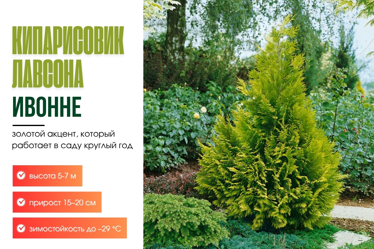 Кипарисовик Лавсона Ивонне — золотой штрих, который меняет сад