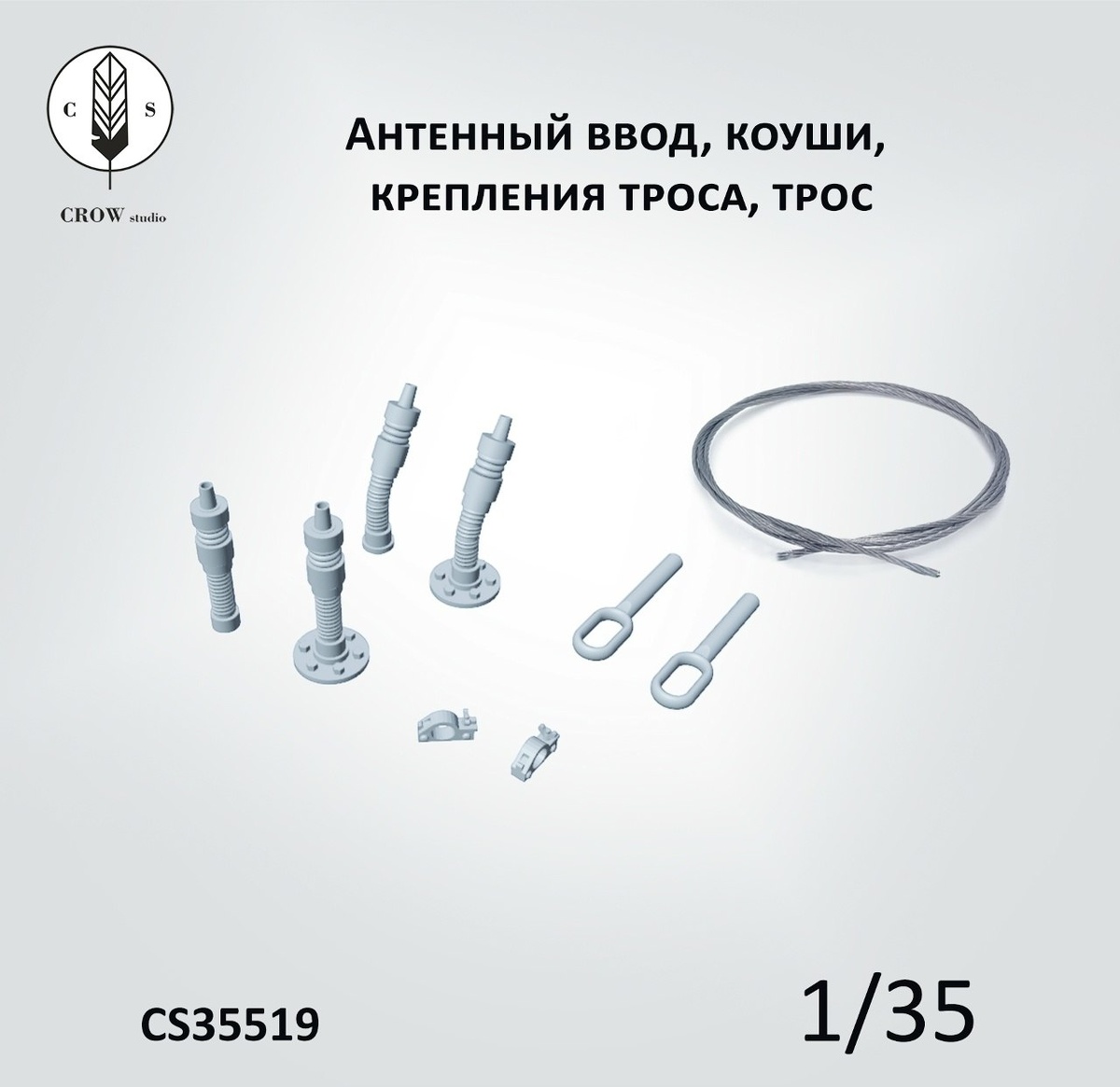 CROW Studio из Санкт-Петербурга выпустила на 3D-принтере набор дополнений для моделей американской техники периода Второй мировой войны в масштабе 1/35: антенные вводы, коуши буксирных тросов, крепления троса и сам металлический трос.