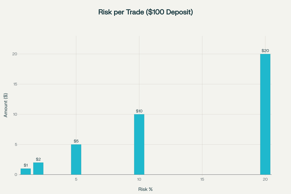 Представьте: у вас на счету 100 долларов. Согласно правилам управления рисками, вы должны рисковать не более 1-2% на сделку. Получается, что ваш риск составляет всего 1-2 доллара за одну сделку. А если взять 5% — это уже 5 долларов. Пять долларов за одну сделку. Звучит смешно, правда?