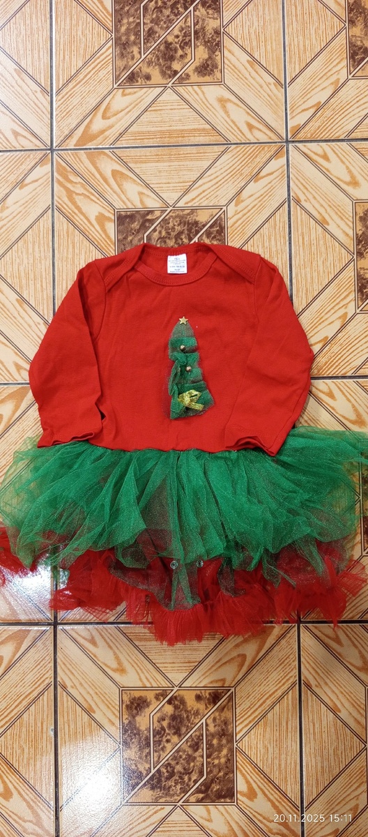 Продам новогодний костюм (боди) размер 80, еще есть ободок елочка.