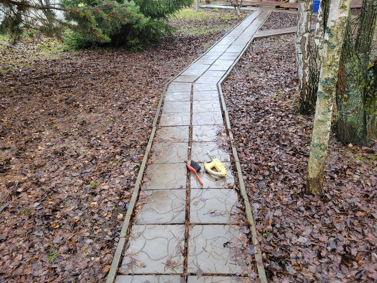 Итак, аккумулятор разрядился, в итоге приличный кусок дорожки обработала, и возле мангала тоже обработала.