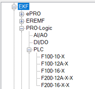 Головные модули PRO-Logic предназначены для выполнения логических операций по разработанной и загруженной пользователем прикладной программе. Делятся на 2 типа – F100 и F200. Модуль F100-10-X содержит 6 дискретных входов и 4 дискретных выхода В базе данных каталога AutoCAD Electrical имеется два изделия: · Программируемый контроллер F100 10 в/в N PRO-Logic EKF PROxima · Программируемый контроллер F100 10 в/в PRO-Logic EKF PROxima Модуль F100-12А-X содержит 4 дискретных входа, 4 дискретных выхода, 2 аналоговых входа, 2 аналоговых выхода В базе данных каталога AutoCAD Electrical имеется два изделия: · Программируемый контроллер F100 12 в/в N PRO-Logic EKF PROxima · Программируемый контроллер F100 12 в/в PRO-Logic EKF PROxima Модуль F100-16-X содержит 8 дискретных входов и 8 дискретных выходов В базе данных каталога AutoCAD Electrical имеется два изделия: · Программируемый контроллер F100 16 в/в N PRO-Logic EKF PROxima · Программируемый контроллер F100 16 в/в PRO-Logic EKF PROxima Модуль