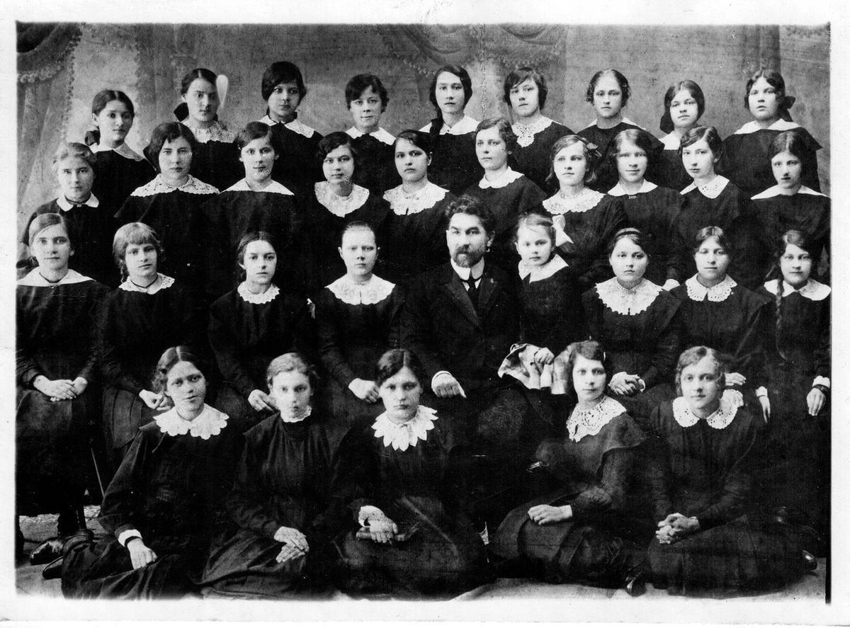 В центре - С.Н. Лебедянский, вторая слева от него - Мария Некрасова. После революции учащиеся I Советской школы II ступени занимались в помещениях школ I ступени – Третьей и Четвёртой (на Успенской улице). 1929 г. В центре - П.В. Гусаковская. 1937 г. Из домашнего архива Веры Павловны Леонтьевой: Справка Тихвинского городского отдела народного образования об окончании средней школы с отличием в 1939 г. на имя А.И. Рассказовой. 17.08.1954. Местонахождение: Музей истории СПбГУ Управления экспозиций и коллекций Федерального государственного бюджетного образовательного учреждения высшего образования "Санкт-Петербургский государственный университет" Выпускной класс школы № 1 г. Тихвина.1939 г. (А.И. Рассказова - второй ряд, 8-я слева). Местонахождение Музей истории СПбГУ Управления экспозиций и коллекций Федерального государственного бюджетного образовательного учреждения высшего образования "Санкт-Петербургский государственный университет" Шк. № 2, 6 кл. 1940 г. Вверху справа - Женя Еме