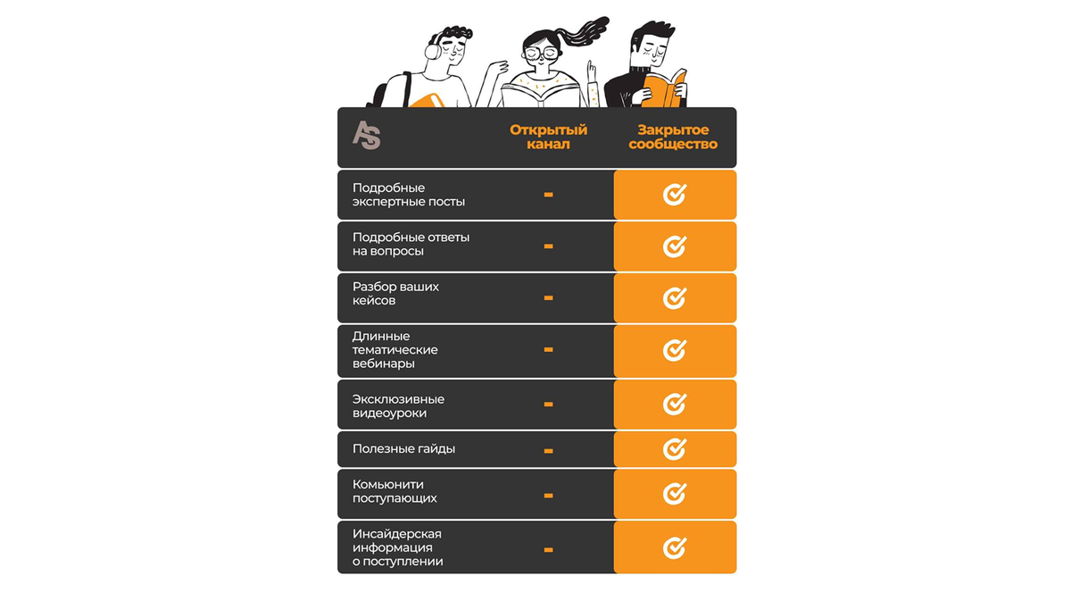 Сразу спешу всех успокоить – я не перестану вести открытый Телеграм-канал. Там останутся новости, рассуждения, интересные кейсы из практики. Закрытое сообщество «Секреты поступления с Анастасией Слотиной» – возможность глубоко, подробно и экспертно рассказывать о поступлении и различных изменениях в системе образования. Что там будет? — подробные экспертные посты-разборы от Анастасии Слотиной, чтобы точно во всем разобраться — каждый месяц вебинары по самым горячим темам, вебинар с разбором кейса одного из подписчиков, вебинар с ответом на вопросы — детальные ответы на ваши вопросы в чате Здесь, в обычном канале, я просто не успеваю отвечать всем – особенно в период приемной кампании. А мне очень хочется поддерживать вас и подробно все рассказывать. В камерной атмосфере сообщества вы сможете получить развернутые ответы от меня и моей команды на разные вопросы. Например, те, которые касаются правил поступления или различных нововведений. При этом, конечно, подобрать вуз или устроить пол