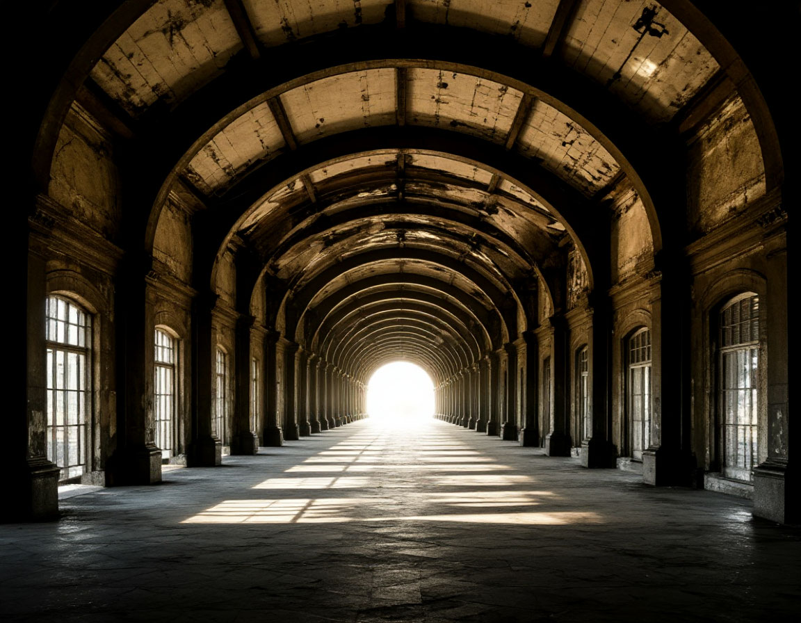 Они вышли в технический коридор, а потом — в старый зал станции. Здесь всё ещё сохранялись элементы былого величия: мраморные колонны, мозаика на потолке, широкие платформы.
