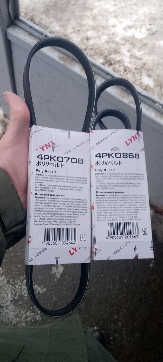 Здравствуйте. Опишу процесс замены ремня генератора, кондиционера. Начну с того,что скидываю клеммы аккумулятора ,+ и -. Прежде чем снять ремень генератора,нужно снять ремень на кондиционер:)Там все легко. Снизу откручиваем 2 болта на кондиционере,мне их однажды отломили,скорее всего от износа.Головка на 12. На кондиционер сверху есть такой же кронштейн с болтом для регулировки натяжки ремня. После этот болт ослабляем и снимаем первый ремень.Ключ на 12 К сожалению подбиратся к болтам крепления нижнего кронштейна генератора без снятия колеса и защиты тяжело. Вот таким ключом смог подобраться к нижнему болту кронштейна генератора . Ослабляем сначало болты кронштейна на генераторе ,верхний и нижний.Нижний болт на 14, верхний болт на 12. Далее ослабляем ремень на кронштейне,стоит перпендикулярно верхнему болту крепления кронштейна. И снимаем 2 ремень . Ставить ремни в обратном направлении ,сначало генератор ,потом кондиционер . Ключом на 17 помогаем прокрутить шкив коленвала. Для н