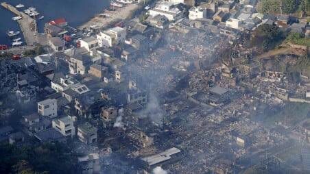 Пожар пронесся через более чем 170 зданий в южном японском прибрежном городе, который горел ночью