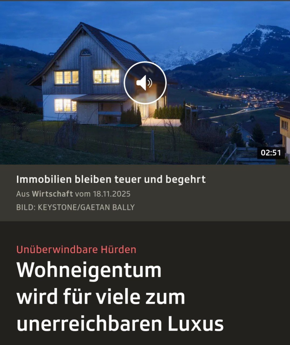 📌 От обещания благосостояния до предмета роскоши: В Швейцарии — одной из самых богатых стран мира — всё меньше людей могут позволить себе собственное жильё. При этом спрос остаётся высоким, как показывает новое исследование консалтинговой компании по недвижимости IAZI. Одновременно усиливается нехватка жилой площади — в том числе из-за роста населения. По всей стране показатель свободных квартир составляет всего 1%. То есть пустующих квартир или домов почти нет — но много людей, которые хотят стать владельцами. Высокие цены, строгие правила Кроме того, за последние пять лет цены на жильё, по данным исследования, выросли на 26%. Хорошая новость: ставки по ипотеке сейчас низкие. То есть на кредит в настоящее время нужно платить относительно немного. Кому повезло — наследники Но есть одно «но»: кто хочет взять ипотеку на собственное жильё, должен иметь как минимум 20% стоимости жилья в виде собственного капитала. Для многих жителей Швейцарии это непосильная преграда. Другим удаётс