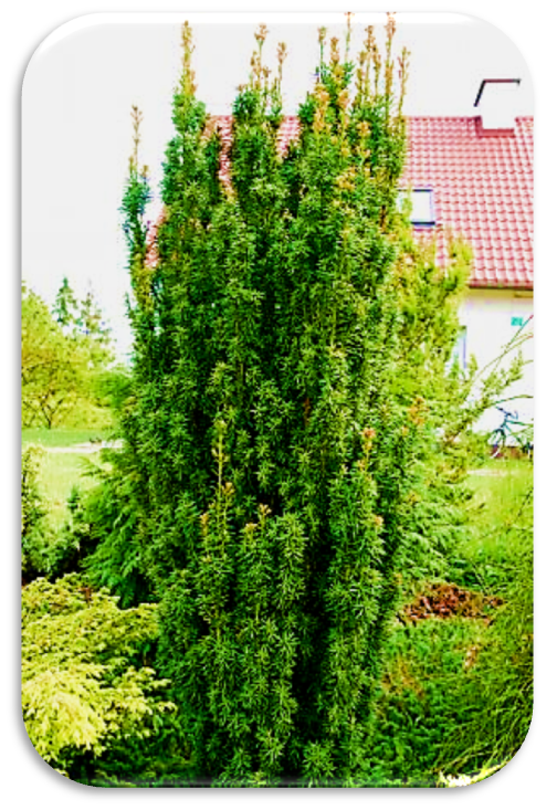 Медленнорастущий, теневыносливый, вечнозелёный. Крона колонновидная, хвоя тёмно-зелёная, плотная. Максимальная высота - 3 м, диаметр - 1 м. Отлично подходит для аллейной посадки, живой изгороди и др. групповых композиций.