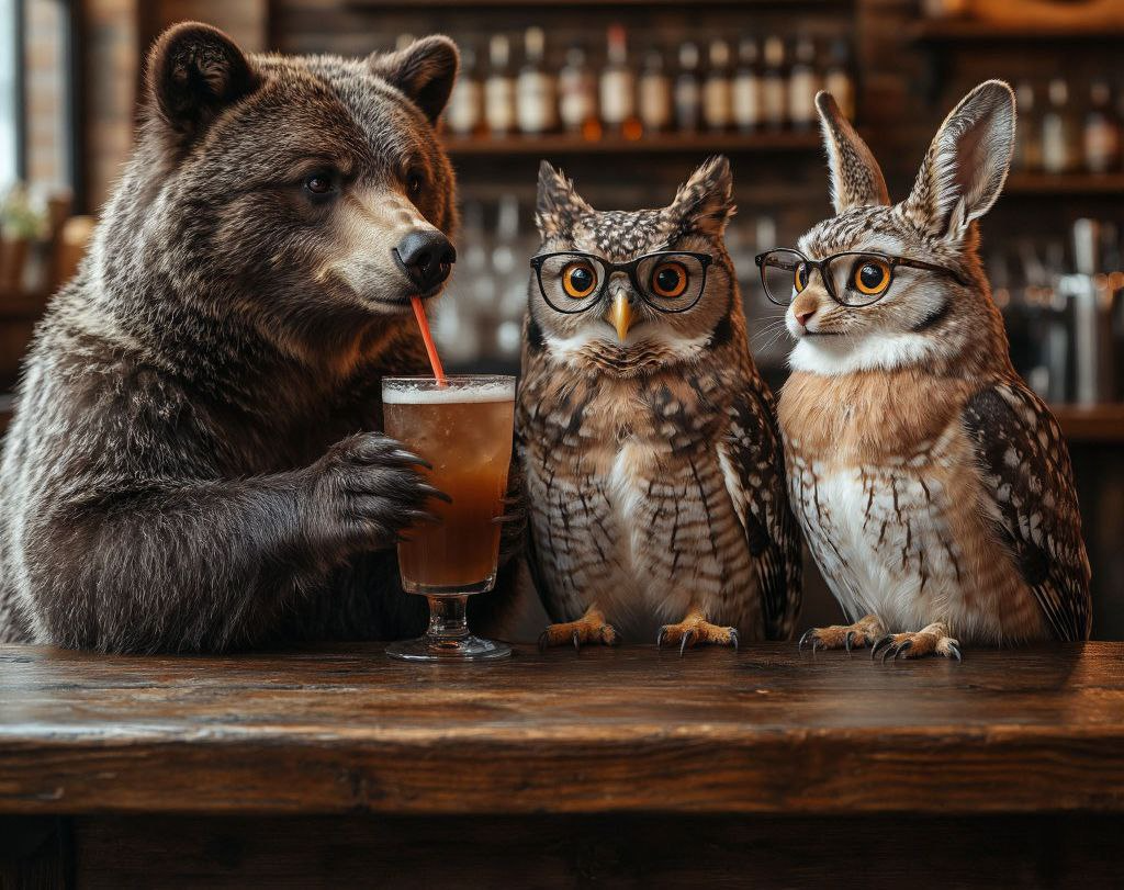 Был в лесу свой бар, который носил название " У ёжика ". Его владельцем в действительности был ёж, который любил порядок. Однажды ночью, в бар нагрянула компания друзей: медведь Борис, лиса Лариса, заяц Женя, волк Вальтер и старый филин, по прозвищу профессор. Все в баре были известные персонажи. Борис имел привычку заказывать по три литра мёда, Лариса искусно кокетничала, Женя был неизменно нервозным и вечно путал сахар с солью, Вальтер всегда выглядел деловито и вечно копался в своих картах, прорисовывая окрестности, а профессор бесконечно рассказывал истории, которые заканчивались каким нибудь философским афоризмом. Ёж встречает гостей: — Вход платный. — И чем же платить? Спрашивает возмущенно Вальтер — Тем, что у вас есть. Кто хвостом, кто лапой... Смеётся над ними Ёж и впускает в бар, заставив прежде протереть свои лапы. — Налейте мне мёд, и не в чашку, а в бочку. Я уважаю традиции. Сказал Борис довольным голосом — Пожалуйста, тем кто уважает традиции у меня действует скидка. В эт