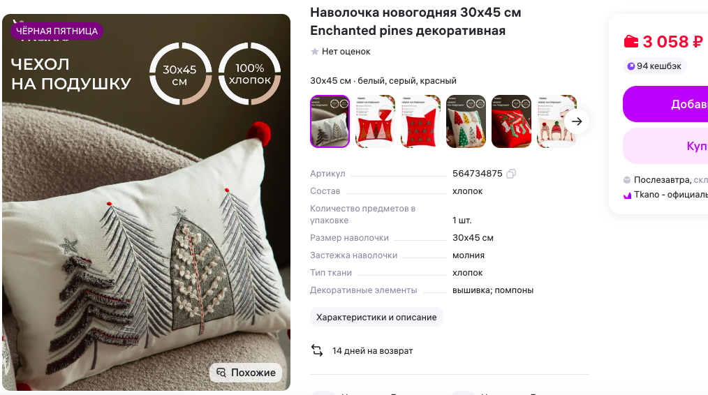 Начнём с той самой наволочки — Enchanted pines 30х45 см (арт. 564734875).