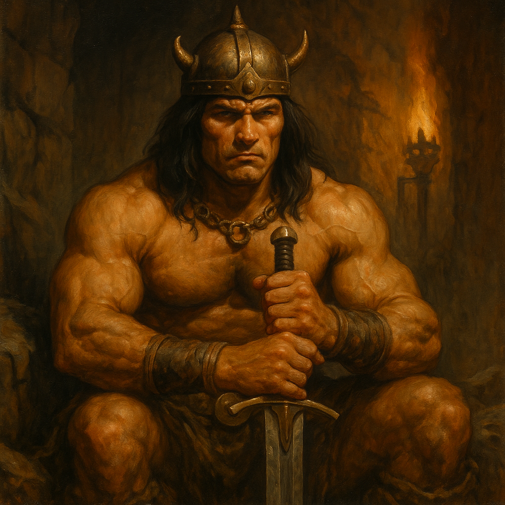 - Что, приятно быть дичью?! - прорычал взбешённый ещё киммериец, буравя глазами беспомощного теперь врага. Правда, в его распоряжении были только глаза бандита - всё остальное лицо скрывала чёрная тканевая повязка. Чёрной же была и вся остальная одежда грабителя, а руки и часть лица оказались вымазаны сажей: так делал и сам варвар.