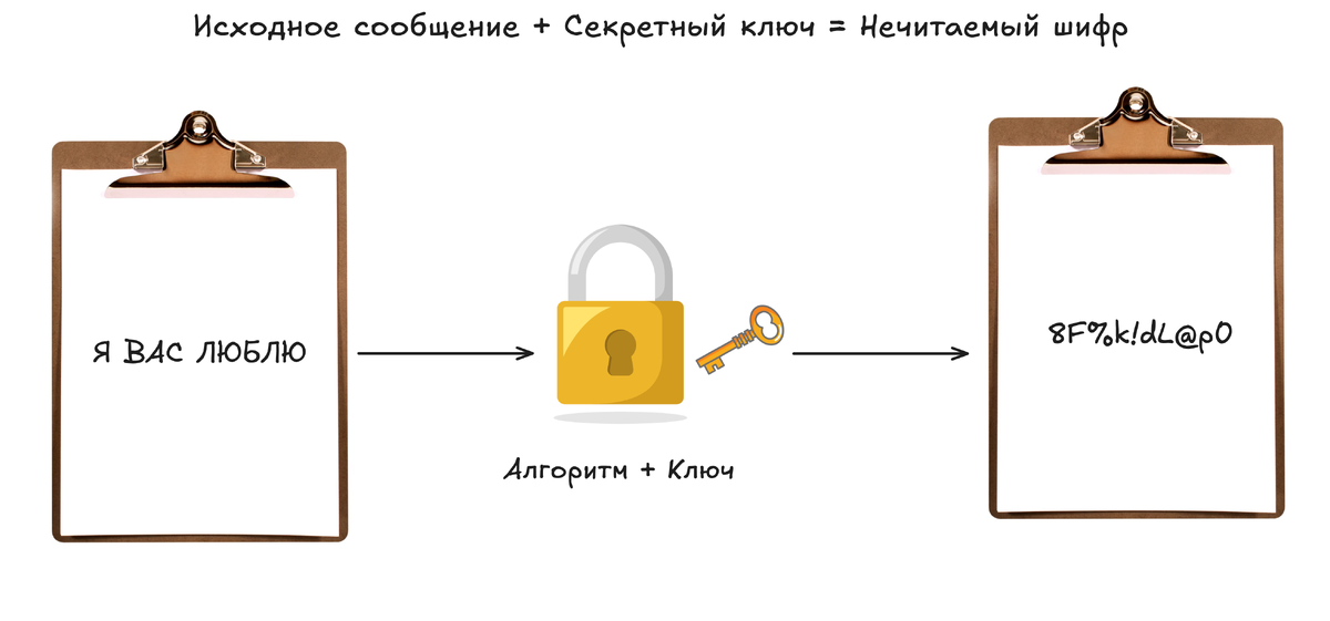 Основная идея шифрования проста: взять исходный текст (его называют «открытый текст») и с помощью специального алгоритма и секретного «ключа» превратить его в хаотичный набор символов («шифротекст»). Этот процесс напоминает работу с сейфом. Ваша ценность — это открытый текст. Алгоритм шифрования — это сам сейф стандартной конструкции. А ключ — это уникальная комбинация, которая запирает и отпирает этот сейф.