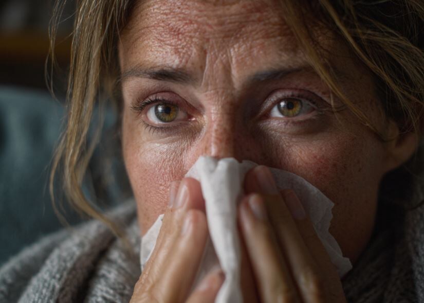Когда вы болеете, ваша иммунная система работает в усиленном режиме, чтобы бороться с вирусом, и это сказывается на состоянии вашей кожи. Организм перенаправляет ресурсы на иммунную активность, из-за чего кожа получает меньше питательных веществ и энергии. Поначалу изменения незаметны, но по мере нарастания воспаления на лице начинают проявляться признаки усталости. Кожа может выглядеть тусклой из-за замедления обновления клеток. Область под глазами может потемнеть из-за нарушения кровообращения. Даже текстура может казаться неоднородной, как будто средства лежат сверху, а не впитываются. Ещё один важный фактор — обезвоживание. Когда вы болеете, вы часто дышите ртом, а не носом, особенно ночью. Дыхание через рот высушивает нежную кожу вокруг губ и подбородка. Кроме того, из-за заложенности носа многие люди пьют меньше воды, даже не замечая этого. В результате кожа становится сухой и стянутой. Из-за обезвоживания также становятся более заметными мелкие морщинки, особенно вокруг глаз, г