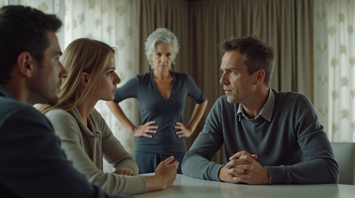 Тетя Нина приехала через два дня — седая женщина с острым взглядом и сумкой, полной "семейных документов". Она села за стол, разложив бумаги, и начала мягко, но настойчиво.