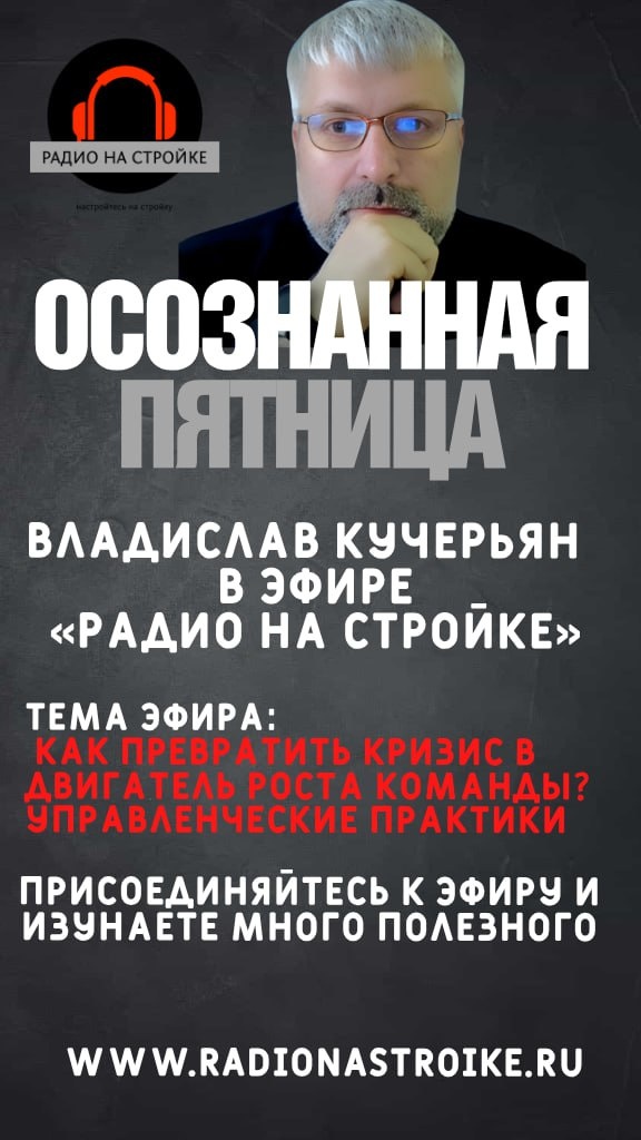 Друзья, по многочисленным просьбам, мы возобновляем Осознанную пятницу с Владиславом Кучерьяном! С 9:00 - 10:00 подключайтесь к эфиру! Обсудим следующие вопросы: Кризис как источник роста: изменения в сознании и новые возможности. Практики быстрого лидерства: как принимать решения оперативно и уверенно в условиях неопределенности. Управление командной динамикой: поддержка мотивации, доверия и прозрачности. Извлечение уроков из кризиса: частые ретроспективы, визуализация рисков и планы действий. Эффективные кризисные процессы: перестройка целей, приоритетов и ресурсов без потерь. Культура сервиса внутри коллектива: эмпатия, коммуникации и поддержка сотрудников. Не проспите и не пропустите! до встречи в эфире www.radionastroike.ru