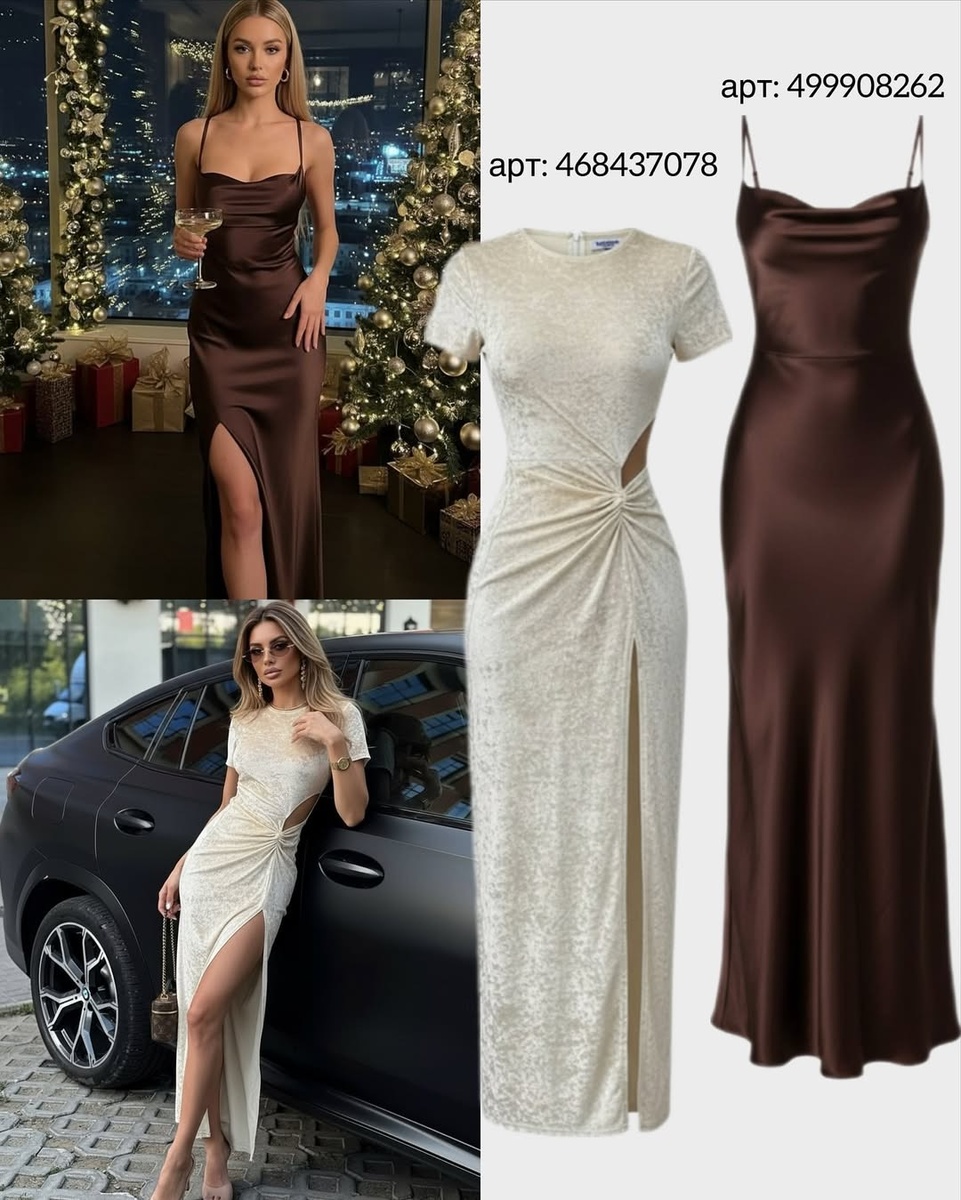 Эта подборка создана именно для торжественных вечеров, праздничных фотосессий, ресторанных ужинов и, конечно, самой новогодней ночи. Здесь вы найдете как сияние шампанского, так и глубокий благородный блеск шоколадного атласа, как игривость мини, так и драматичность длинных вечерних силуэтов.