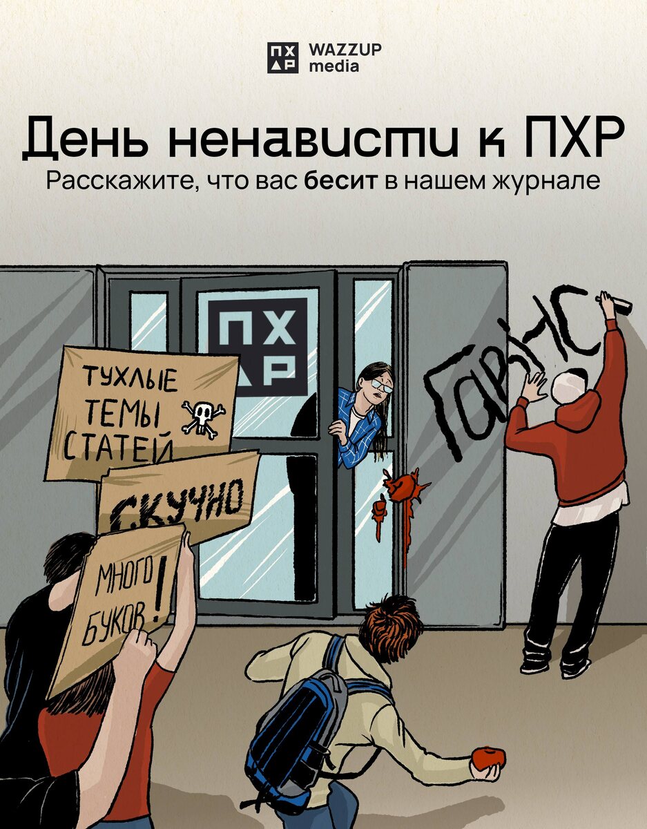 День ненависти к ПХР! Коллеги, сегодня официально разрешаем побыть нашими хейтерами и высказать всё, что вам не нравится в ПХР🙅♂️ Может, мы постим слишком часто? Или редко? А букв не слишком много? Может шутки тупые? Нам очень важна обратная связь, чтобы быть еще лучше!⚡ (хотя куда уже)