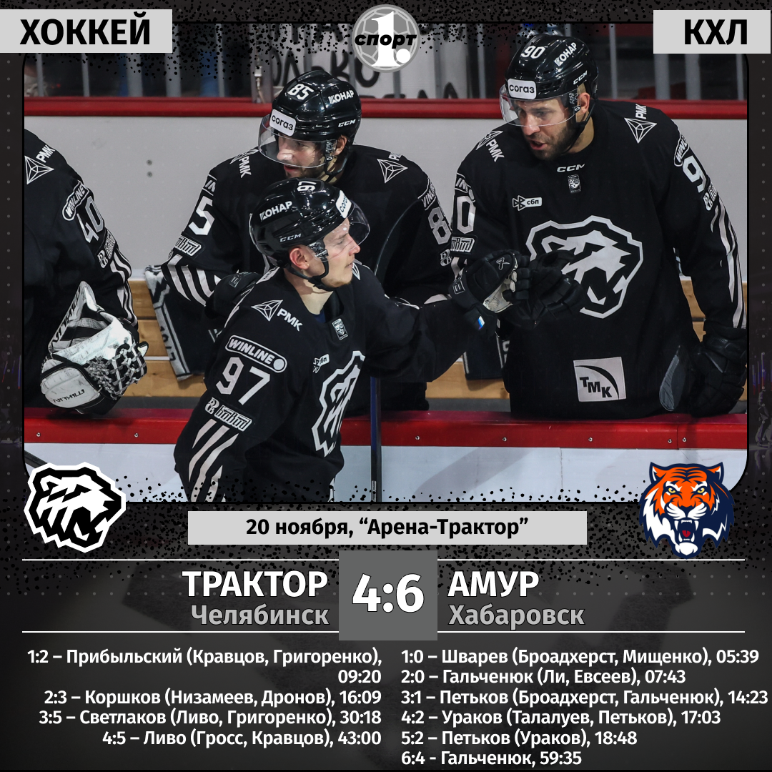 Хоккеисты «Трактора» потерпели четвертое поражение подряд в чемпионате КХЛ. Сегодня, 20 ноября, челябинцы уступили на своем льду «Амуру» со счетом 4:6, причем пять шайб хозяева льда пропустили еще в первом периоде. В заключительном отрезке матча «черно-белые» едва не совершили камбэк, но пропустили в пустые ворота, передает корреспондент ИА «Первое областное». Вообще-то «Трактор» в текущем сезоне пропускал в одном матче немало шайб, причем на домашнем льду. Не забыли игру 14 октября с омским «Авангардом»? Но в том поединке наши парни хоть и пропустили в свои ворота 8 шайб, но ответили пятью голами. Да и нужно учитывать силу соперника. При всем уважении к «Амуру», дальневосточники никогда к фаворитам лиги не относились. А тут челябинцы пропустили от «тигров» аж пять шайб в первом периоде! Хоккеисты «Амура» забивали на любой вкус — в равных составах и большинстве, в позиционных атаках и быстрых прорывах, дальними бросками и на добивании. Но гнев болельщиков вызвала четвертая шайба в воро