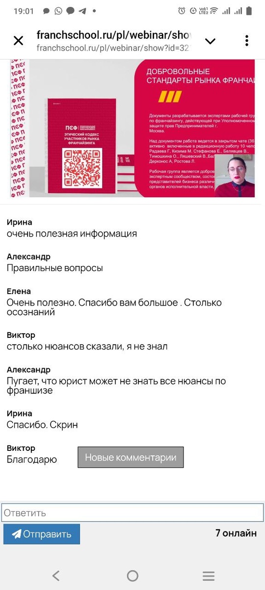 Спасибо эксперту Школы Франчайзи , @Ekalo_Catherine за доступный формат подачи материала молодым предпринимателям , отзывы говорят сами за себя. 🤝🤝🤝 Ну а разработанная первая версия для Стандартов рынка доступна по Qr , коду - полезна всем, кто работает на рынке. 💯 🔥👉 Каждый четверг, эксперты Школы Франчайзи и ПСФ делятся своим опытом с молодыми предпринимателями и франчайзи (потенциальными и действующими) на открытых вебинарах. Послушать и пройти доступный безоплатный Базовый курс можно по ссылке http://franchschool.ru/anket #ШколаФранчайзиПСФ #РосмолодежьГранты