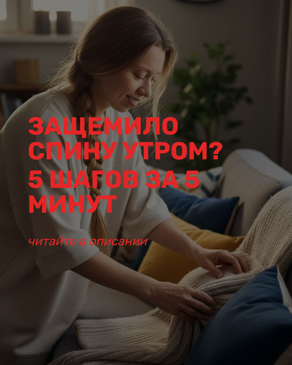 Защемило спину утром? 5 шагов, которые нужно сделать в первые 5 минут Если вы проснулись, сделали первое движение - и «стрельнуло», это не обязательно травма. В 80% случаев это резкая потеря компенсации: тело всю ночь удерживало напряжение, а утром просто сдалось. Вот спокойный алгоритм на ближайший час. 1. Успокойте дыхание Не пытайтесь резко встать или разогнуться - тело только усилит защитный спазм. Лягте на спину, согните ноги. Ладонь на живот. Дышите медленно, с длинным выдохом. Так мы успокаиваем диафрагму и снижаем болевой ответ. 2. Подключите микродвижения В острую фазу сильные растяжки и резкие движения только ухудшают ситуацию. То, что действительно работает: • лёгкое покачивание таза • микронаклоны на миллиметры • мягкие боковые покачивания Тело быстрее выходит из спазма, когда получает сигнал: «движение безопасно». 3. Тёплый душ Горячие грелки и лёд лучше избегать - могут усилить отёк. А вот тёплый душ отлично расслабляет поверхностное напряжение и снимает ощущение «зажато