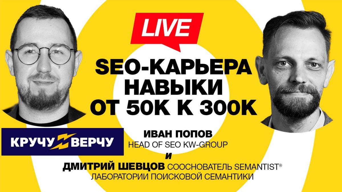 🔴Semantist® Live 🎬 «SEO-специалист 2026: как вырасти с 50 000 до 300 000+», в среду 26 ноября 2025 в 13:00 МСК, Иван Попов (Head of SEO KW-Group) — Кто такой SEO-специалист сегодня и каким он станет в 2026 году — Ключевые технические навыки, без которых не вырасти в доходе — Дорожная карта развития: путь от джуна до высокооплачиваемого эксперта — Как стать по-настоящему ценным для бизнеса, а не “просто сеошником” — Главные блокеры и ошибки, которые мешают росту карьеры и зарплаты Кому будет полезен? Доклад будет полезен специалистам любого уровня, которые застряли в развитии и ищут понятный вектор движения. Новичкам — чтобы разобраться в профессиональном сленге, понять, что реально важно в работе SEO в 2026 году и как выстраивать первые шаги в профессии. Опытным специалистам — чтобы критически взглянуть на свою текущую работу и рынок, переосмыслить свою ценность для бизнеса и наметить траекторию роста навыков и компетенций. Присоединяйтесь, чтобы заранее подготовиться к требован