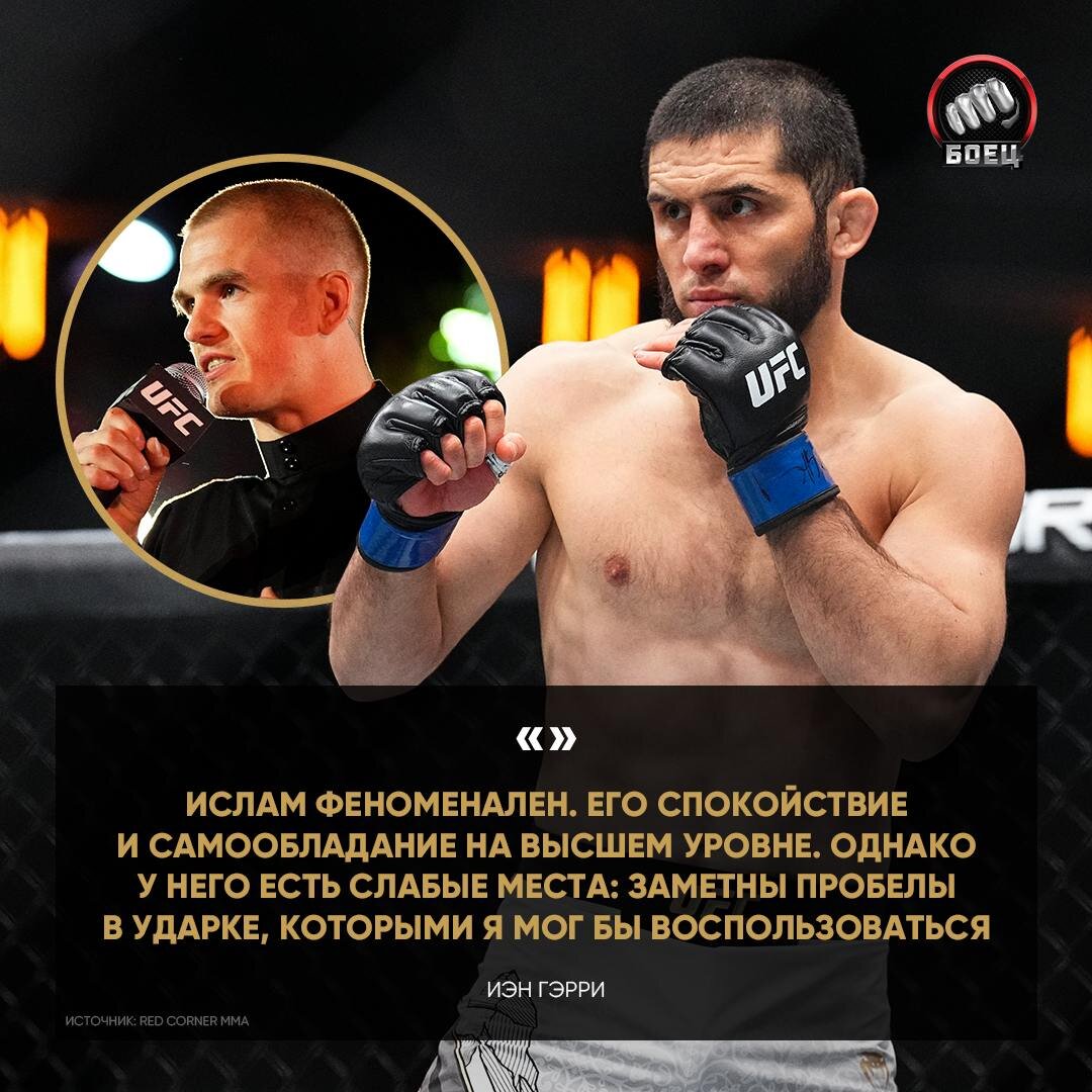 Гэрри выразил респект Махачеву. Но заявил, что сможет победить Ислама 🤔 🗣 Он не совершает глупости, а действует правильно каждый раз. У него безупречная борьба, он серьезная угроза в партере. Но мне все равно на это. Я умен, хорош в стойке и чертовски быстрый. Он никогда не встречал никого настолько быстрого. Я знаю, на что способен. И очень хочу добавить его имя в свое резюме, отобрать у него титул и прервать серию побед. Что думаете?