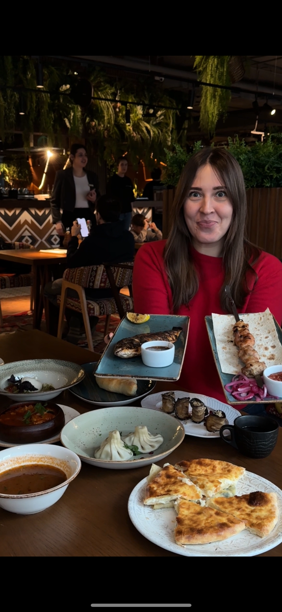 Да, да, полноценный безлимит за цену одного хинкали на Патриках. Я сначала тоже не поверила, но поехала — и всё, ребята, это любовь. Ресторан называется The Хинкали, и открыл его владелец The Бык, поэтому концепция такая же фирменная — плати мало, ешь много. Находится он за МКАД, в Мытищах, примерно в 20 минутах езды от метро Медведково. Но честно — оно того стоит. По будням у них действует акция: 600 рублей взрослым, 400 детям, и ты можешь есть и пить всё, что захочешь. Но главное — доедать до конца. Не доел — платишь полную стоимость блюда. Так что тут реально надо рассчитывать силы, а не включать режим «сейчас снесу всё». Теперь по блюдам, потому что кухня там прям шикарная. Хинкали. Сочные, горячие, правильно залепленные. Есть классические с мясом, есть куриные, есть сырные — все большие, вкусные, и да, вот эти «с бульончиком», за которые люди готовы драться. Хачапури. По-имеретински — мягкий, сырный, с такой корочкой, что хочется заказать ещё один. По-аджарски — огромная лод