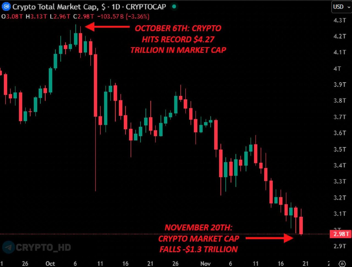 π³ Π‘ 6 ΠΎΠΊΡΡΠ±ΡΡ ΠΊΡΠΈΠΏΡΠΎΡΡΠ½ΠΎΠΊ ΠΏΠΎΡΠ΅ΡΡΠ» $1,300,000,000,000 ΡΡΠ½ΠΎΡΠ½ΠΎΠΉ ΠΊΠ°ΠΏΠΈΡΠ°Π»ΠΈΠ·Π°ΡΠΈΠΈ. Crypto Headlines