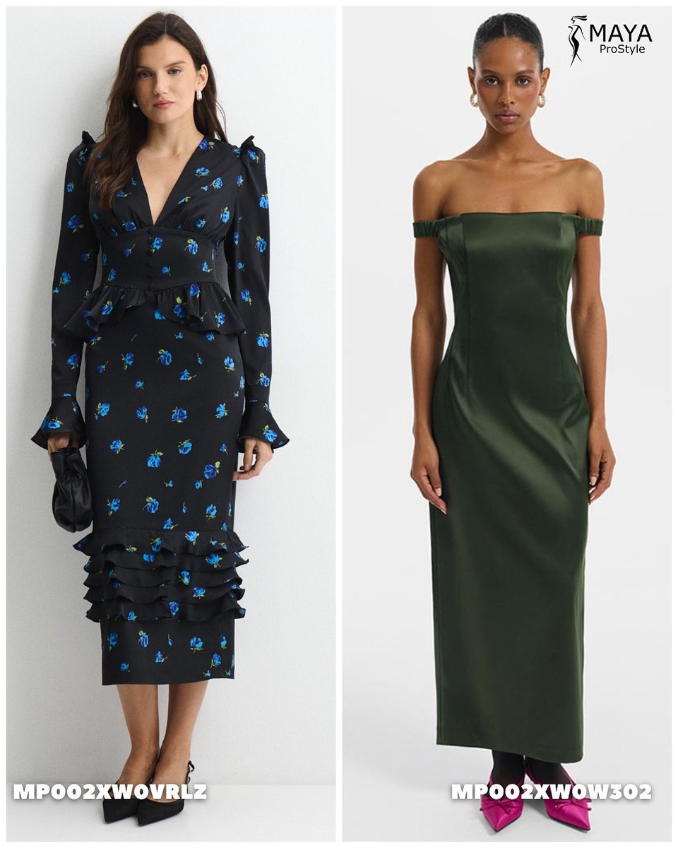 Новый год — это время, когда хочется сиять, чувствовать себя особенно утончённо и подчеркнуто женственно. Именно поэтому правильно подобранное платье способно не просто создать настроение, но и стать вашим личным источником уверенности. В этой статье я собрала изысканную подборку новогодних платьев с Lamoda — элегантных, эффектных, продуманных до мельчайших деталей. Каждое из них рассказывает свою историю, создаёт особый образ и точно не останется незамеченным. Предлагаю погрузиться в мир роскоши, тканей, силуэтов и идеальных пропорций. Статья составлена строго по порядку по артикулам, чтобы вам было удобно искать понравившиеся модели. Это платье — воплощение благородной утончённости. Глубокий черный фон оттеняется небесно-синими цветами, создавая ощущение движения и живости. Это платье великолепно сочетается с строгими замшевыми лодочками и лаконичной сумкой. А слегка волнистые волосы будут идеальным дополнением к мягкому романтичному настроению образа. Изумрудное платье выглядит д