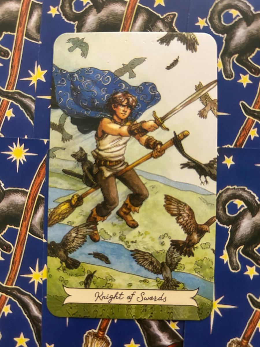 Если ваша жизнь внезапно «ускорилась», если вы куда-то несётесь, принимаете быстрые решения, если иногда кажется, что вы сами не успеваете за собой — это энергия Рыцаря Мечей. Это аркан стремительного движения, импульса, решимости, иногда — резкости. Рыцарь на бешеном коне мчится вперёд, не сомневаясь. Он верит в свою правоту, в своё дело, в свою правду. Это энергия: Когда ситуация требует решительности. Когда уже нельзя тянуть. Когда пришло время «делать», а не «думать». Примеры: — Вы резко увольняетесь. — Говорите партнёру то, что невозможно больше держать в себе. — Начинаете масштабный проект, не успев всё просчитать. — Вступаетесь за себя или близкого, не боясь последствий. Это честный разговор, прямое выяснение, разбор ситуации «по факту». Иногда — конфликт, вспышка, эмоциональный выброс. Иногда — прорыв, наконец-то высказанно то, что копилось годами. Урок: держите голову холодной, а слова — точными. Резкий рывок, дедлайны, авральная работа. Но и большие достижения, быстрые резу