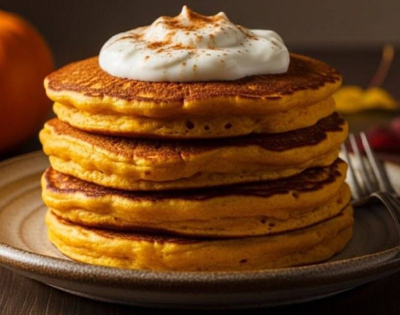 Тыквенные оладьи 🥞 Описание: Пышные и яркие оладьи, сладкие за счет тыквы и специй. • Ингредиенты: -Тыквенное пюре –180 г -Яйцо – 1 шт. - Рисовая или цельнозерновая мука – 3- ст. л. - Разрыхлитель – ½ ч. л. - Корица, мускатный орех – по вкусу • Приготовление: 1. Смешайте все ингредиенты до однородного теста. 2. Выпекайте на сухой антипригарной сковороде с двух сторон до готовности. можно полить сиропом б/с,или украсить нат. йогуртом 25 г и присыпать корицей или какао!