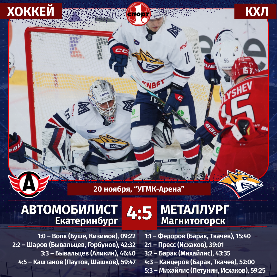 Результативный и зрелищный хоккей в Екатеринбурге показали команды «Автомобилист» и «Металлург». Магнитогорский клуб вырвал победу со счетом 5:4, закрепившись на лидирующей позиции в чемпионате КХЛ, сообщает корреспондент ИА «Первое областное». Накануне «сталевары» выиграли у «Трактора» в Челябинске (4:3), а сегодня отправились огорчать еще один уральский клуб. Вот только сделать это им было непросто. «Автомобилист» как будто преодолел игровой кризис и в двух последних матчах праздновал успех. Причем команда из Екатеринбурга здорово в этих поединках сыграла в атаке, забросив в ворота «Трактора» и «Нефтехимика» уже 11 шайб. Равная игра с обоюдными шансами на успех — так коротко можно охарактеризовать первый период между командами. В первой его половине чуть острее действовали хозяева льда, во второй больше активности в атаке проявляли гости. Открыли счет в матче хоккеисты «Автомобилиста», реализовав большинство. «Металлург» сравнял счет также при игре в неравных составах. Классную трехх