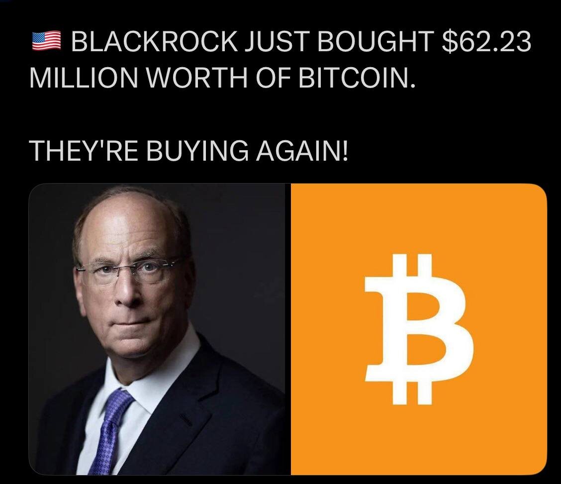 🇺🇸 BLACKROCK ТОЛЬКО ЧТО КУПИЛ БИТКОИНЫ НА СУММУ 62,23 МИЛЛИОНА ДОЛЛАРОВ. ОНИ СНОВА ПОКУПАЮТ!