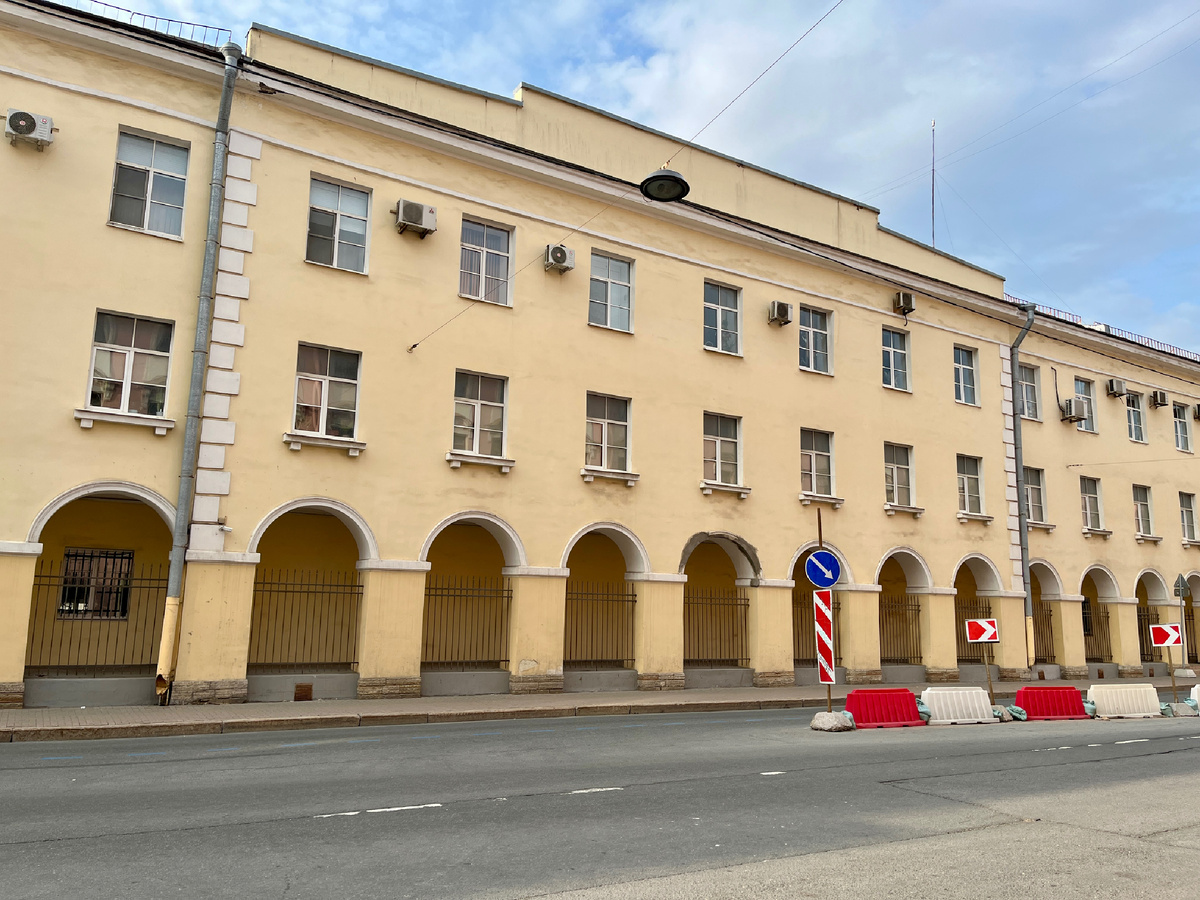 25. Изначальная специализация района до сих пор представлена в качестве Военно-артиллерийской академии, занимающей обширное здание Нового Арсенала (1799-1801, Фёдор Демерцов) на Литейном проспекте: