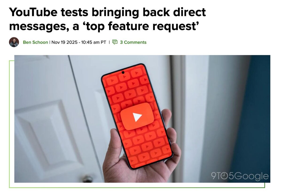 У нас появится еще одна личка: YouTube возвращает функцию директа — спустя шесть лет после того, как её отключили. Забавная новость, но в компании считают, что это повысит экранное время и позволит улучшить количество пересылок роликов. И да, директ — это один из самых популярных запросов пользователей. Нам, конечно, повезло, так как у редакции канала «Лобушкин» YouTube нет, и ещё одну личку нам разгребать не придётся. Ну а если и вы не знаете, что посмотреть и ждёте, что вам кто-то предложит, то обязательно посмотрите интервью с Евгенией Долматовой. @lobushkin