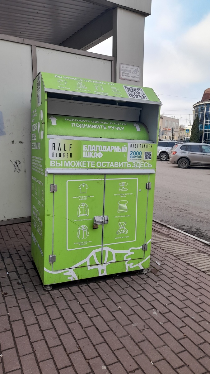 Сегодня нужно было сходить в МФЦ, обновить карту. Эта организация находится на южной стороне города, от меня далековато, пришлось ехать до станции на автобусе, а оттуда - ножками через жд по переходу. Пока шла, увидела необычный сервис - "Благодарный шкаф". Это ящики по сбору одежды. Желающие расхламиться могут оставить здесь свои надоевшие вещи - от маек до мягких игрушек: одежду, аксессуары, обувь, текстиль. Тема интересная, на Кубани я такого не видела. У нас многие просто относят ненужное барахло к мусоркам, а если вещи хорошие - то передают знакомым малоимущим семьям. А вот отдельно сдавать их на переработку отличная идея. Может и у нас такие шкафы появятся? В МФЦ решение вопроса заняло ровно 3 минуты. Не ожидала такой оперативности, пара кликов мышкой, и все работает, спасибо-до свиданья-приходите к нам ещё)). Решила потом немного прогуляться по городу и домой пошла по параллельной улице Фрунзе. Это всегда была тихая и спокойная улочка, где росли сосны, почти не ездили машины.