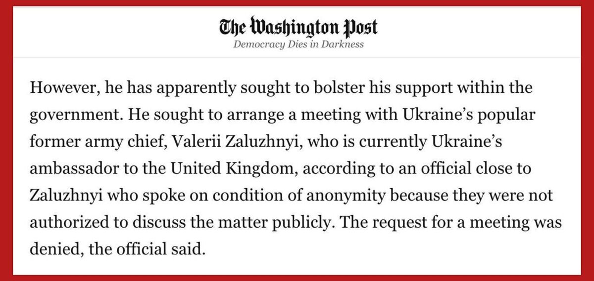 The Washington Post пишет, что Ермак действительно хотел встретиться с Залужным в Лондоне, но тот отказался
