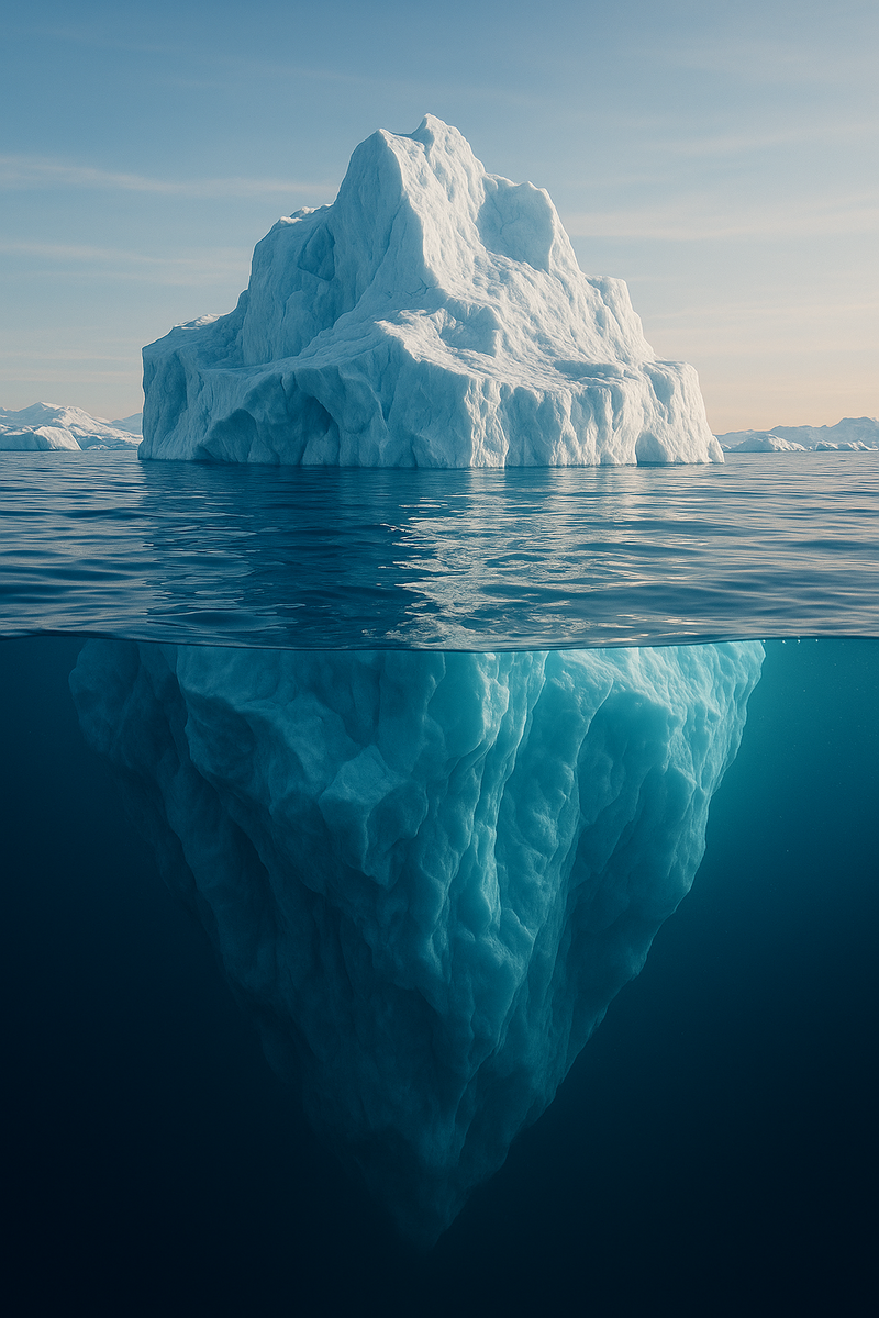 🔰Мы листаем ленту: вот успешный предприниматель на фоне своего нового офиса, вот фитнес-блогер с идеальным прессом, вот путешественник на вершине экзотической горы. Их жизнь кажется нам чередой сплошных побед и достижений. Глядя на эти отполированные до блеска картинки, мы невольно задаемся вопросом: «А что я делаю не так? Почему у них все получается так легко и красиво?» 💠В этот момент мы попадаем в ловушку социального сравнения. Нам начинает казаться, что наш собственный путь — это сплошные трудности и неудачи, в то время как другие порхают от успеха к успеху. Но это лишь иллюзия. 💠Правда в том, что мы видим лишь вершину айсберга. Крошечную, сияющую на солнце часть, которая составляет не более 10% от всей его массы. А вот остальные 90% — мощное, скрытое под толщей ледяной воды основание — остаются невидимыми. Именно в этой подводной части и кроется вся суть успеха. ✳️Над водой: Что все видят (ВЕРШИНА) Это результат, который мы наблюдаем. Глянцевая обложка, вызывающая восхищение, а